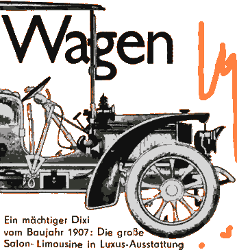 renommierte Marken, darunter Dixi, überstan- den. Sie führten einen erbitterten Konkurrenz- kampf untereinander und gegen ausländische Unternehmen, insbesondere gegen die mono- polisierte nordamerikanische Automobilindu- strie, wo Ford schon vor dem Kriege die Fließ- bandfertigung eingeführt hatte. Die Rückstän- digkeit der deutschen Automobilindustrie of- fenbarte sich auf dem technologischen Sektor. Für erforderliche Investitionen fehlten einerseits eigene Finanzierungsmittel, andererseits ver- weigerte das Großkapital Kredite wegen man- gelnder Rentabilitätsnachweise. Automobil- werke wurden Schacherobjekte, und Dixi geriet mit der Gothaer Waggonfabrik unter den Ein- fluß des Börsenspekulanten Schapiro. Nur zögernd kamen - allgemeingültig für die damals existierenden deutschen Automo- bilwerke - Modernisierungen in der Fabrika- tion zustande. Die Folge war Überproduktion. Automobile mußten unter Listenpreis verkauft werden, das Wechselgeschäft blühte auf, aus- ländische Wagen wurden billiger angeboten. Die Krise spitzte sich zu. In Eisenach war inzwischen die Fertigung modernisiert worden. Man konnte relativ kosten- günstig fabrizieren. Überdies stellten die gro- ßen Dixi-Wagen infolge ihrer Qualitätsmerk- Ganzseitiges Zeitschrifteninserat von 1914 (Bild links). Den Dixi DA 1 (rechts) gab es viersitzig als offenen Wagen mit Verdeck und als Limousine. Gebaut wurde aber auch dieses zweisitzige Coupé. |