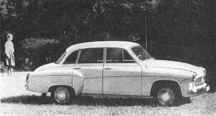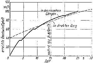 Kupplung, Getriebe, Motor-Getriebe-Aufhängung Die beim Baumuster 312 zur Anwendung kommende Kupplung trägt die Typenbezeichnung LR 10-13 K und ist gegenüber der bis- herigen Ausführung im Nenndrehmoment von 16 auf 14 kpm herab- gesetzt. Diese Maßnahme dient der Verminderung der Ausrückkraft und des Eingriffsstoßes und somit der Erhöhung des Fahrkomforts. Das beibehaltene Vierganggetriebe des Baumusters 311 mit Sperr- synchronisierung des 2. bis 4. Ganges und sperrbarem Drehfeder- freilauf ist im Achsantrieb der neuen Reifengröße angeglichen, während die Übersetzungen der einzelnen Gänge unverändert blie- ben. Die sich daraus ergebenden Gesamtübersetzungsverhältnisse sind in Tafel 1 enthalten. Der Motorgetriebeblock ist unter Berücksichtigung der vorliegenden Einbauverhälnisse nach hinten um 5° geneigt eingebaut. Die Auf- hängung erfolgt in drei Punkten durch Gummimetallager, so daß die Triebwerkvibrationen wirksam in allen Betriebsbereichen ge- dämpft werden. Die Dreipunktaufhängung ist so angeordnet, daß die Auflagepunkte unter Berücksichtigung der Reaktionskräfte des Antriebs annähernd gleich belastet werden und sich ihre Auflage- ebene mit der Hauptträgheitsachse des Motorgetriebeblockes deckt. Das wird erreicht, indem zwei Auflagepunkte mit schräg einge- bauten und dadurch auf Druck und Schub beanspruchten zylin- drischen Gummifedern an breiten Auslegern in Höhe des hinteren Drittels des Motors eine breite Auflagebasis bilden bei gleichzeitiger seitlicher Abstützung, während eine dritte Gummifeder am hinteren Getriebeende den Antriebsblock abstützt und gleichzeitig die Längs- kräfte aufnimmt. Das diese Gummifeder aufnehmende Freilauf- gehäuse am Getriebe ist entsprechend konstruktiv umgestaltet. Karosserie und elektrische Anlage Die Karosserie und damit auch die elektrische Anlage sind bis auf die durch das neue Fahrgestell geänderten Anschlußmaße der Boden- anlage unverändert beibehalten. Hervorgehoben sei lediglich, daß die Türinnenverkleidung beim neuen Baumuster mit gepolsterter, hochfrequenzgeschweißter PVC-Folie in geschmackvollen Dessins ausgeführt sind, die bei der Luxusausführung eine zusätzliche farbliche Absetzung aufweisen. Anstelle der dabei in Fortfall gekom- menen seitlichen Türtasche ist auf der Beifahrerseite unterhalb der Instrumententafel eine Netzablage angebracht. MA 8478 |